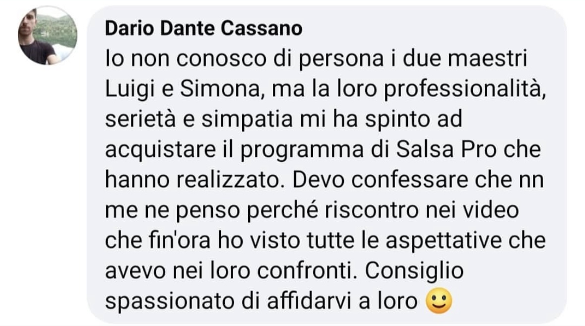 Ciao siamo Luigi e Simona, ballerini e maestri di salsa e bachata e fondatori di Salsa Pro Academy la prima scuola di ballo interamente online più grande di Italia.